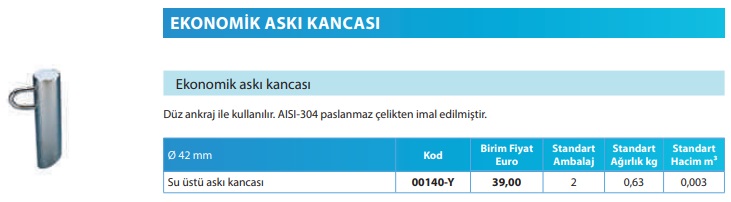 Etiketler: Astral Ekonomik Su Üstü Askı Kancası AISI 304