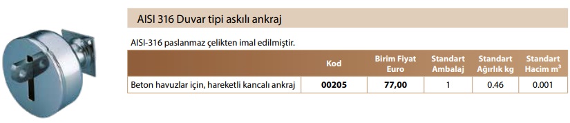 Etiketler: AstralPool AISI 316 Duvar Tipi Hareketli Kancalı Ankraj