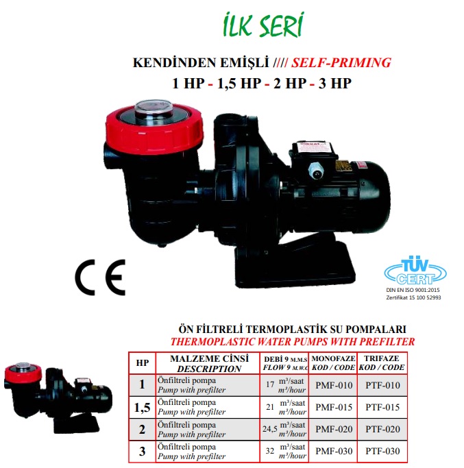Nozbart İlk Seri 1,5 HP Monofaze Havuz Pompası