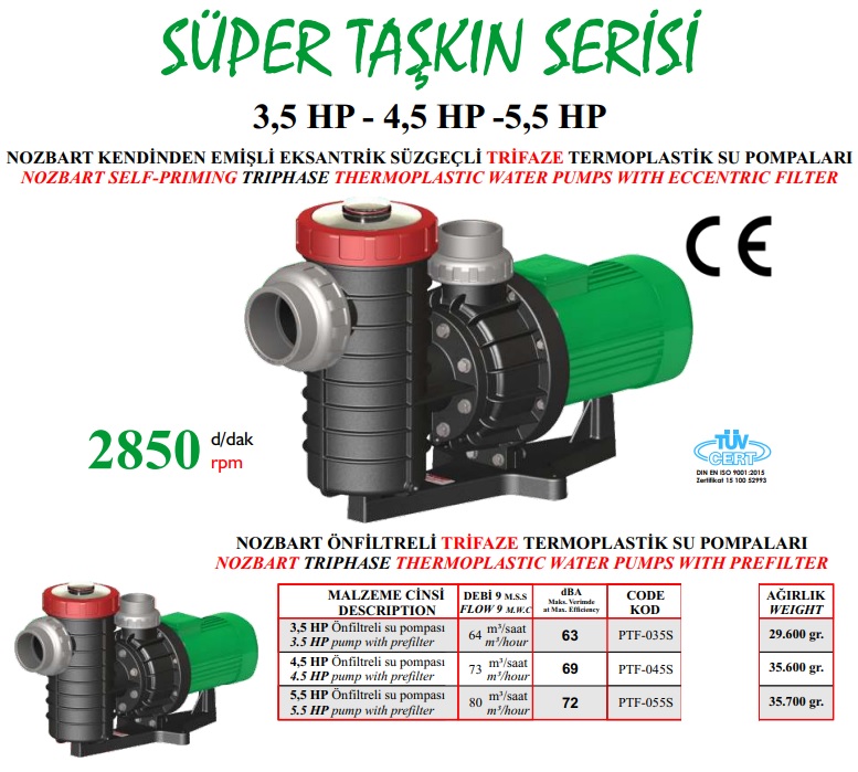 Nozbart Süper Taşkın Serisi 4,5 HP Trifaze Havuz Pompası