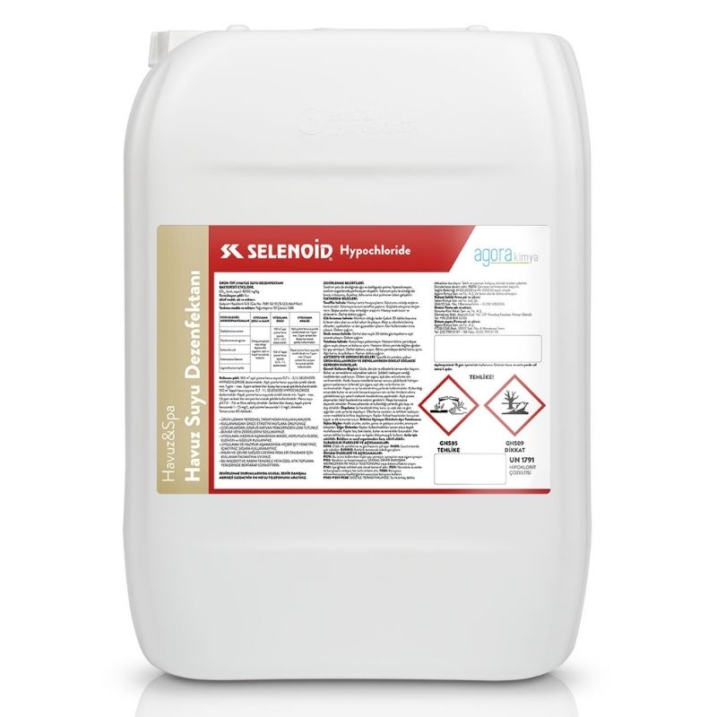 SELENOID Hypochloride 25 KG Sıvı Klor, havuz sularının hijyenini sağlamak amacıyla özel olarak geliştirilmiş klor bazlı sıvı havuz suyu dezenfektanıdır. Sıvı Klor Açık ve kapalı yüzme havuzlarında, bakteri ve zararlı mikroorganizmalara karşı etkili dezenfeksiyon sağlamak için kullanılır.