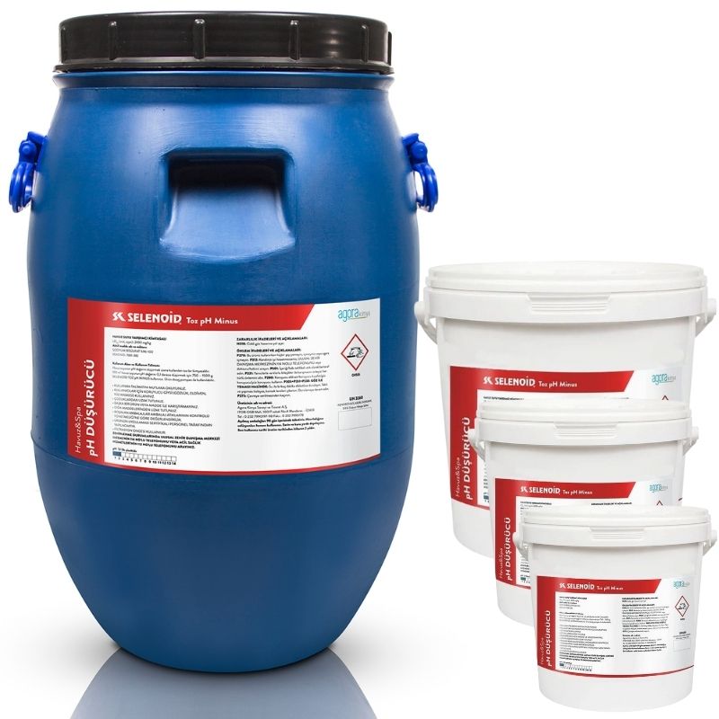 SELENOİD TOZ PH MINUS yüzme havuzu sularında pH düşürücü olarak kullanılır. Aynı zamanda pH düşürücü havuz kimyasalının dezenfeksiyonun devamı ve kireç lekelerinin önlenmesinde etkili bir rolü vardır.Ürün havuz sularında hızlı çözünür. Hızlı ve güçlü etki gösterir. Ürünün toz olması kullanım kolaylığı sağlar.
